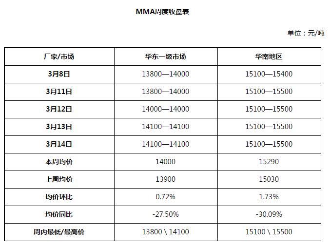 MMA市場周評:價格漲勢穩(wěn)定 向上突破承壓(20190308-0314)
