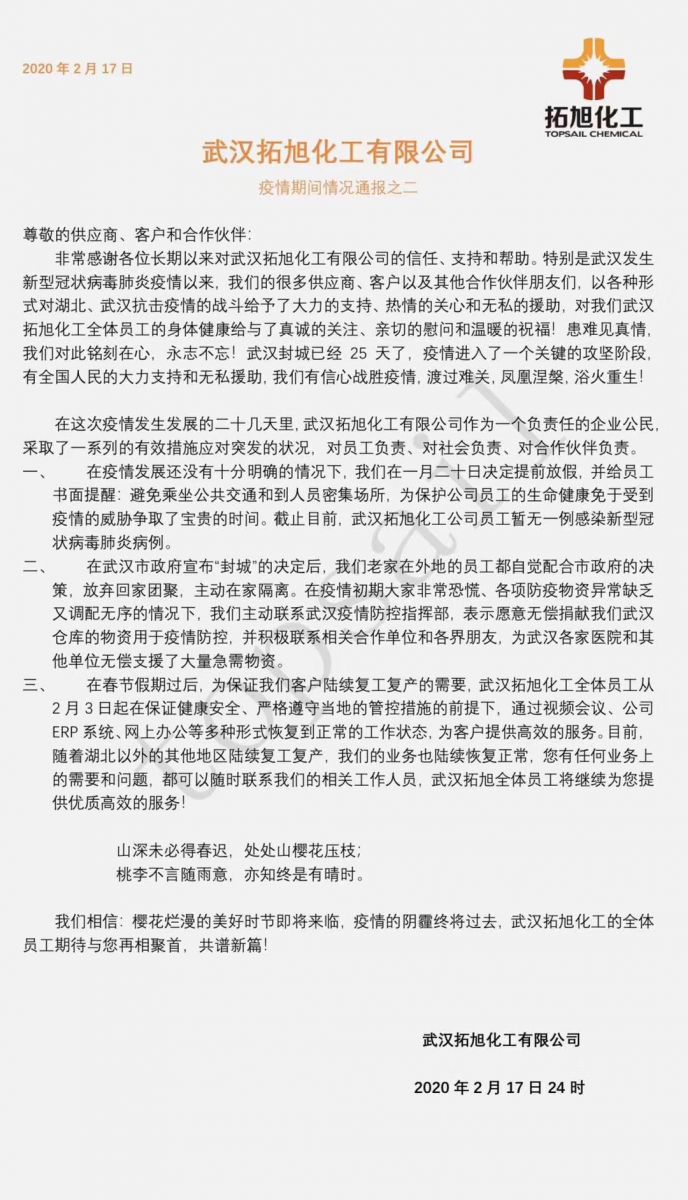 | 上一篇:祝賀2019年武漢拓旭公司員工旅游活動(dòng)圓滿成功 下一篇:重要提示:關(guān)于購(gòu)買危險(xiǎn)化學(xué)品所需資質(zhì)及條件的說明 |